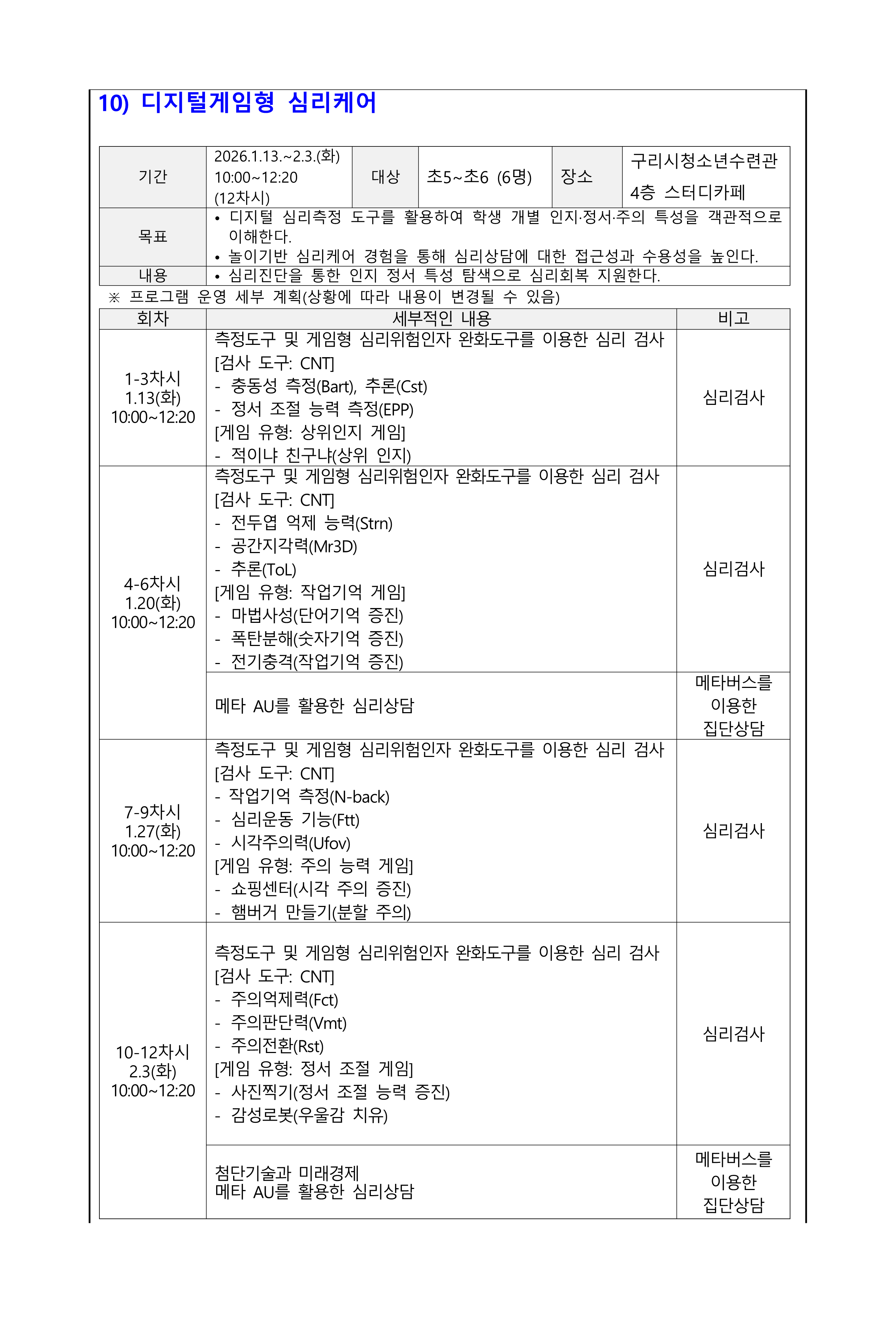 ※ [구리]-[프로그램 신청]-[지역맞춤형 프로그램]에서 해당 프로그램 신청