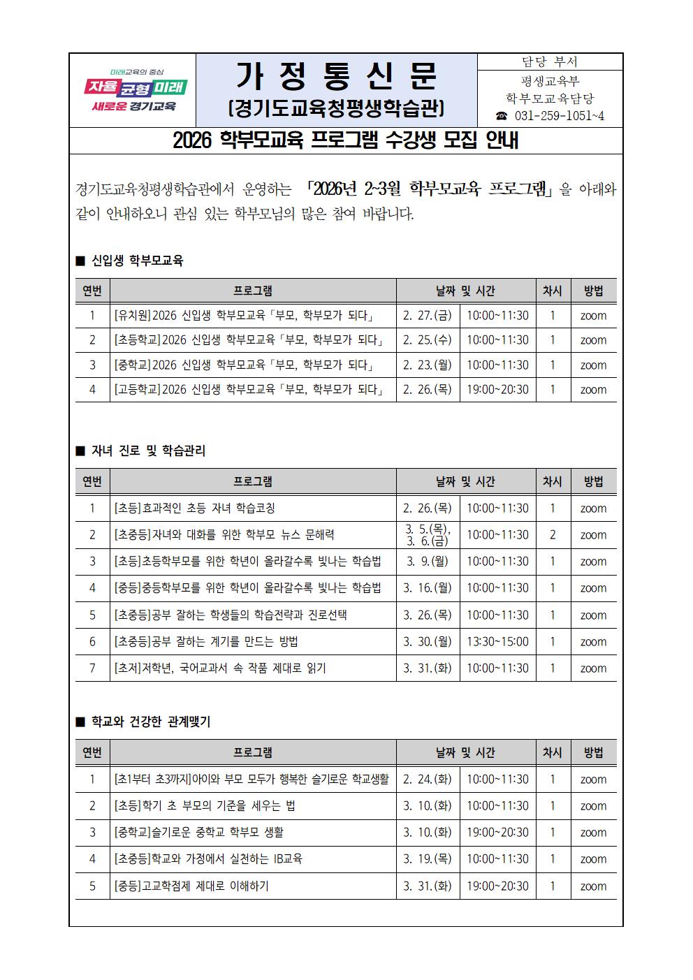 신청방법: 경기도교육청평생학습관 누리집(lib.goe.go.kr/gglec) 회원가입 후 수강 신청