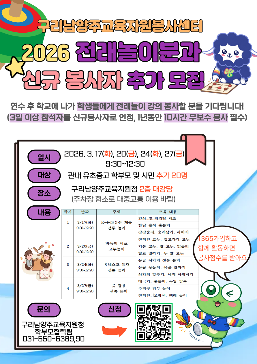 2. 전래놀이분과(화/금 연수): 추가모집 20명