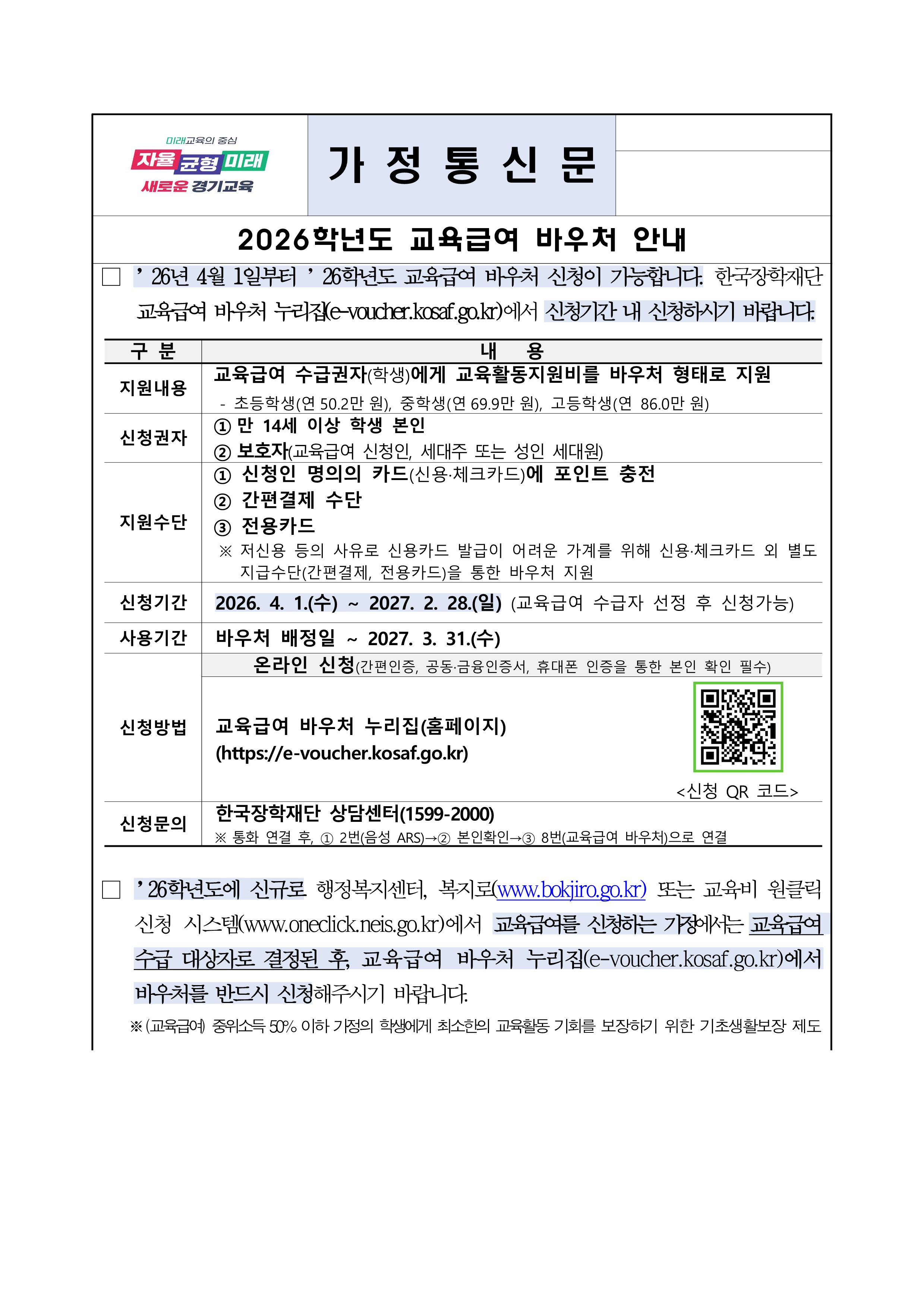 2026학년도 교육급여 바우처 안내