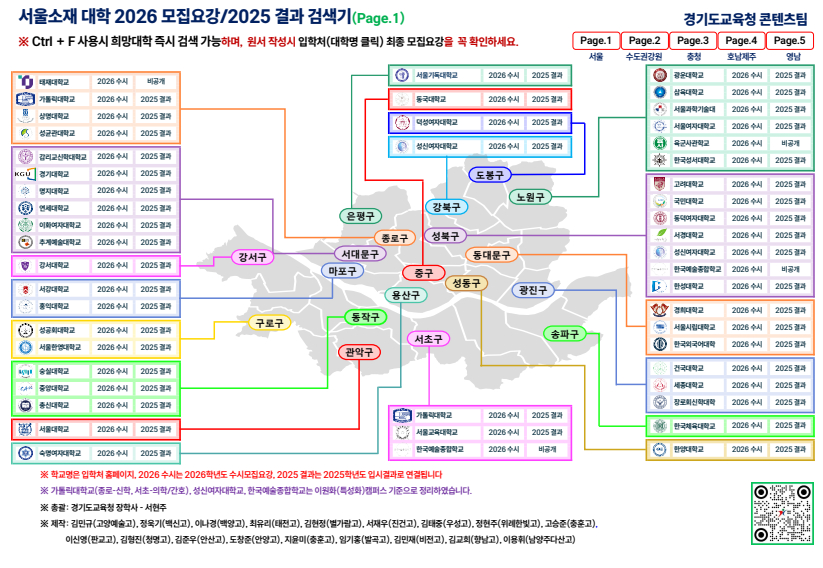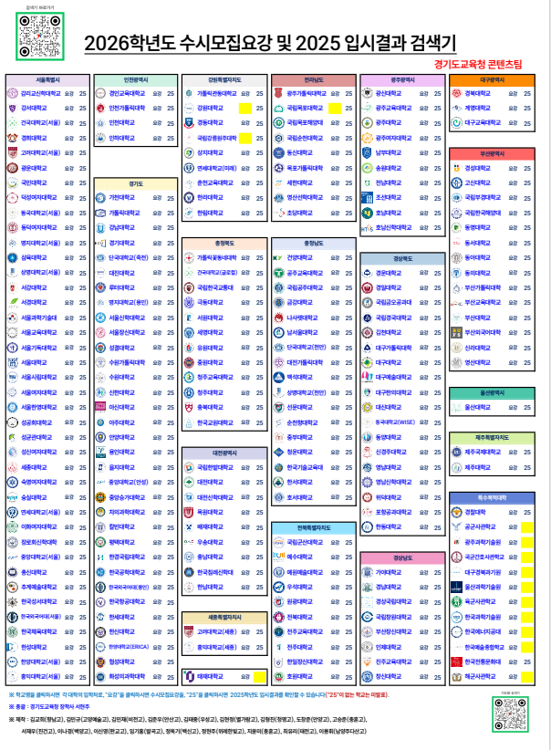 한 화면에서 전국 대학의 입학처 및 수시 모집요강과 입시결과를 확인하실 수 있는 자료입니다.